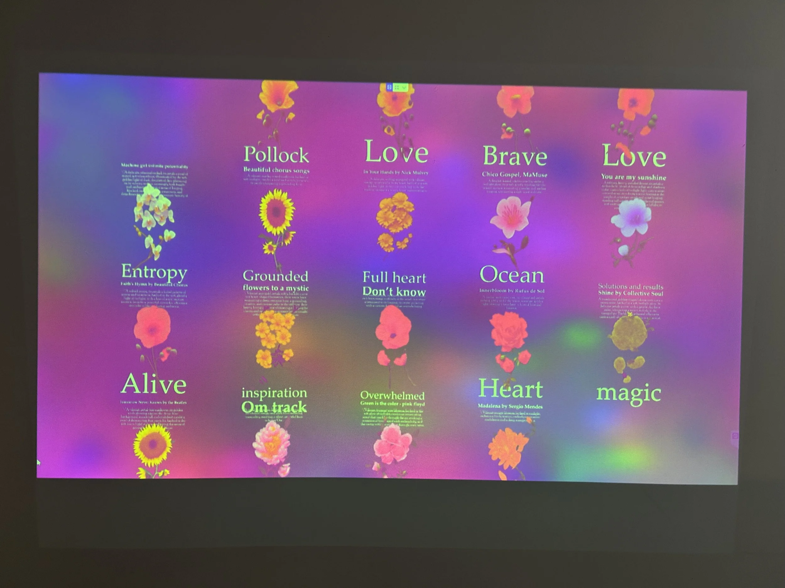 Art installation at the Human Tech conference in which participants are assigned a healing music track and an AI personalized flower based on their preferences.